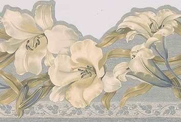 Bloomed White Creme Lily Flowers Floral Wallpaper Border